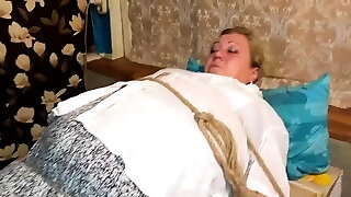 Chubby white amateur whore is helpless and immobilized
