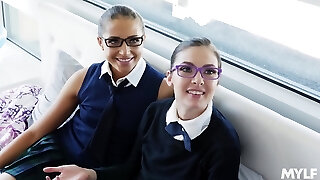 Stepsister noticed how her stepbrother jerks off his fat cock in the bathroom, she is shocked, he has a very big dick, she is aroused, this girl has big all-natural boobies, she is naked, she enjoys to masturbate a big fat trunk and see how the guy cums