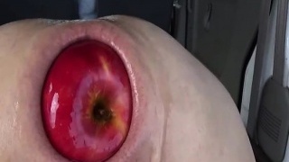 Painful creamy anal and gaping hairy asshole with black dildo. Fucking neighbor girl with big rump and spreading her ass