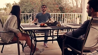 Ginormous jugs mature Cougar Sara Jay enjoyed teen couple on sofa
