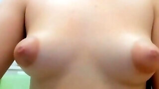Saggy tits doggy style and natural boobs with xxl nips close up. A slender milf with a beautiful bum in a thong permanently masturbates at home. Fetish.