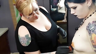 nippleringlover - horny milf stretching labia piercings with 10mm tapers, extreme nipple piercings