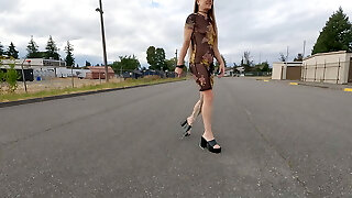 Longpussy, Dragging over a Kilogram (Two.3 lbs) of chain off my Cunny in a Sheer Dress out for a Walk.