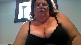 An ugly white blonde BBW mature lady on the couch unclothes on cam