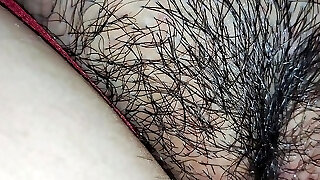 Chunky and horny dark-haired lady spreads her legs and pulls down her panties