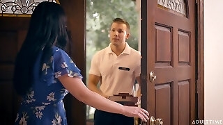 Super-steamy hot and lascivious blonde milf wants to be a submissive slut for brutish young man