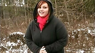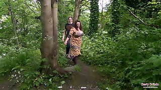 Cougar beautiful blonde sexy Frina picks mushrooms in forest and forgot to wear panties. Without underpants. No panties upskirt. Nude in public. Outdoor. Outdoors. Outside