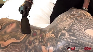 Wondrous tattooed giant bottomed lady Megan Inky takes double penetration